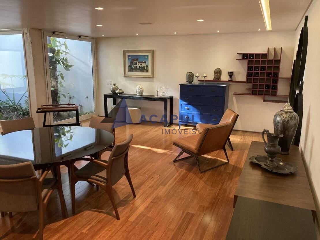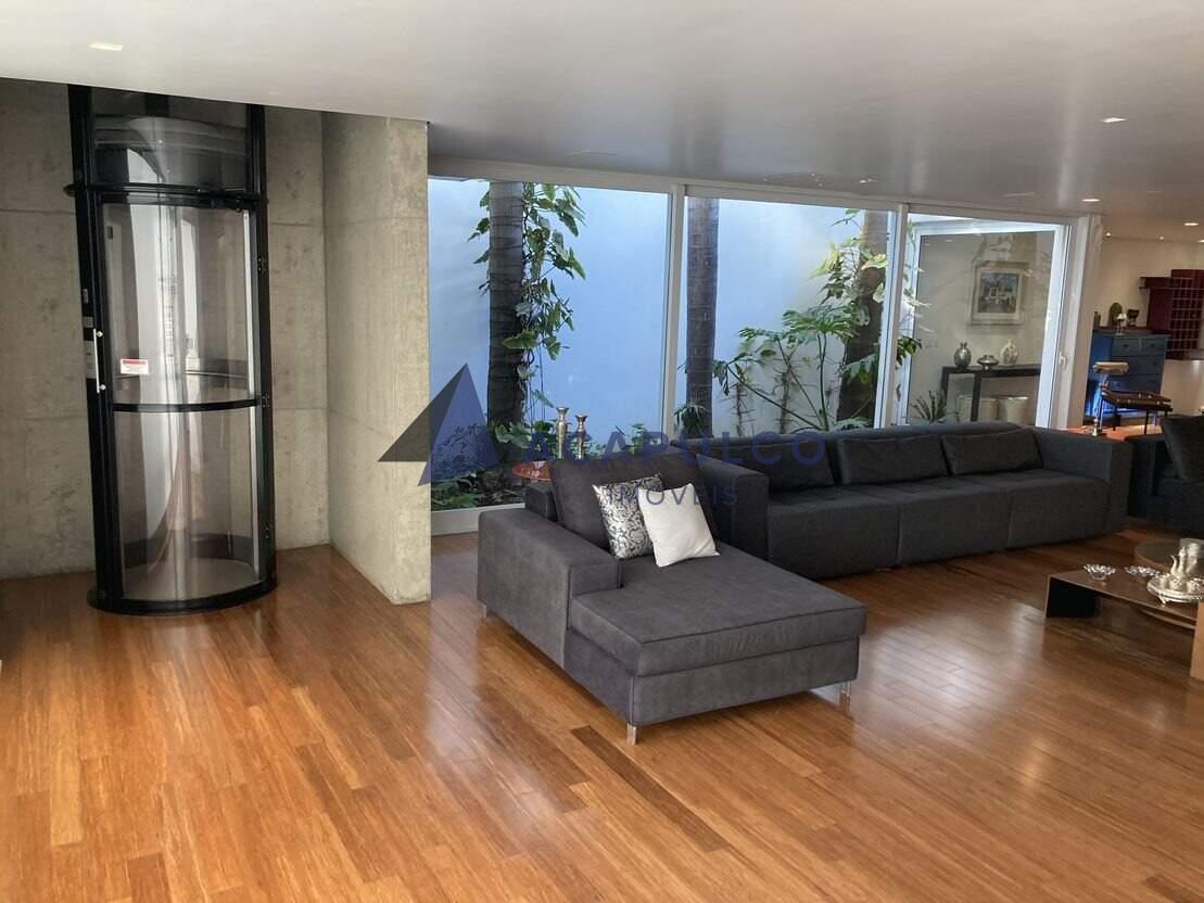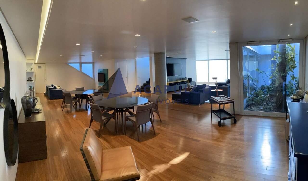 Subsolo: Garagem para 4 carros, amplo espaço com duas salas de TV, sendo uma delas com home-theater; sala de jantar e copa; lavabo; jardim de inverno; lavanderia; quarto de serviço com banheiro (suíte); depósito.